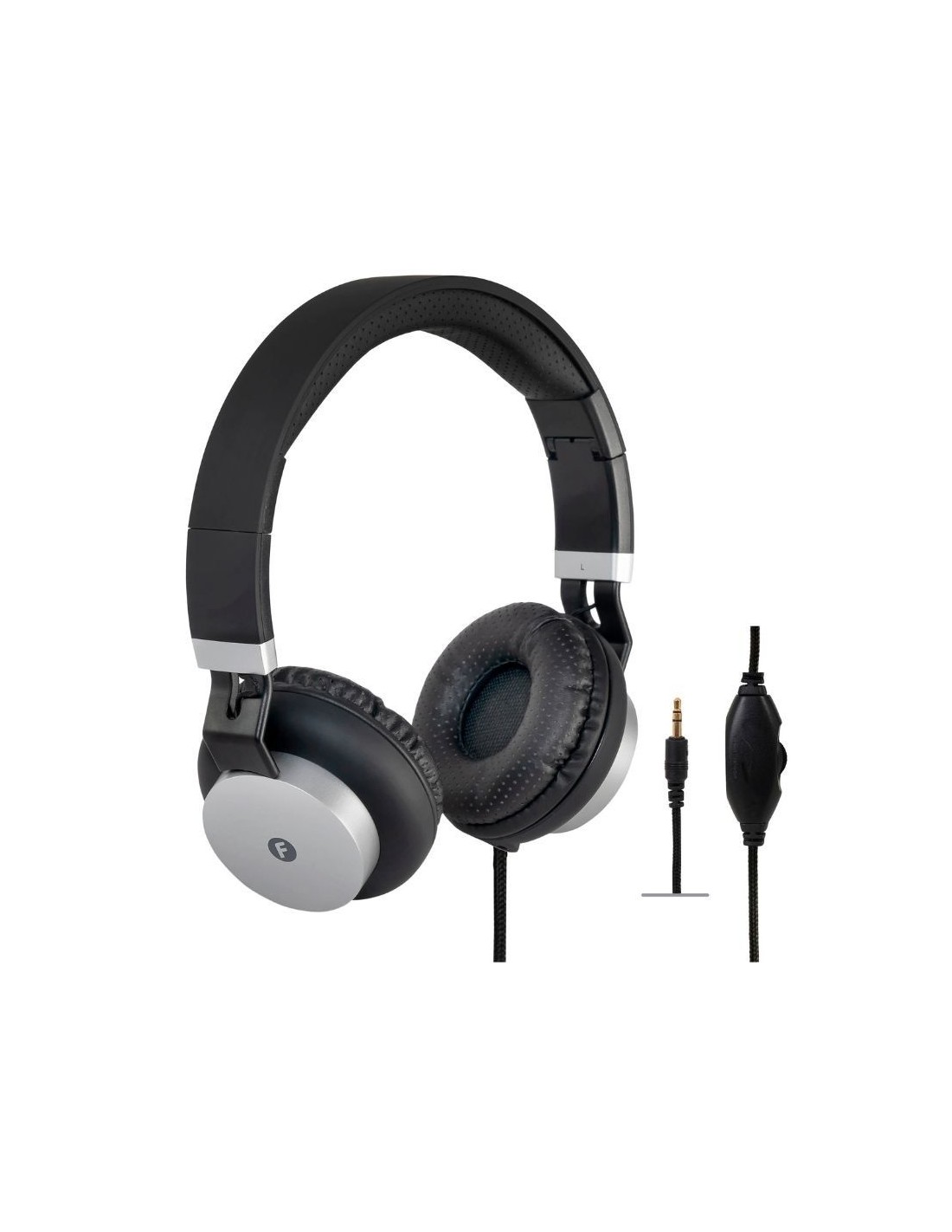 Cable extraíble de 5 m con recubrimiento textil y control de volumen. Se conecta a los auriculares mediante conector jack 3'5 mm estéreo.