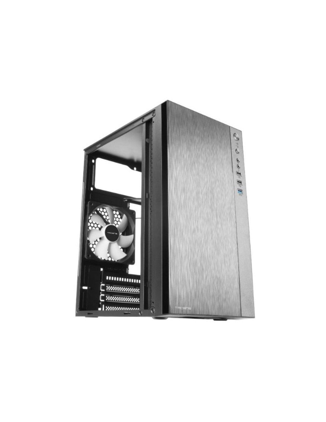 Caja de ordenador Premium Micro-ATX / Mini-ITX de alto rendimiento y tamaño extendido diseñada para ofrecer una estética minimalista y elegante, con una gran funcionalidad y una refrigeración sobresaliente. Cuenta con un frontal con un elegante tratamiento tipo aluminio pulido y un acabado negro profesional que encaja perfectamente en contextos tanto domésticos como de oficina.