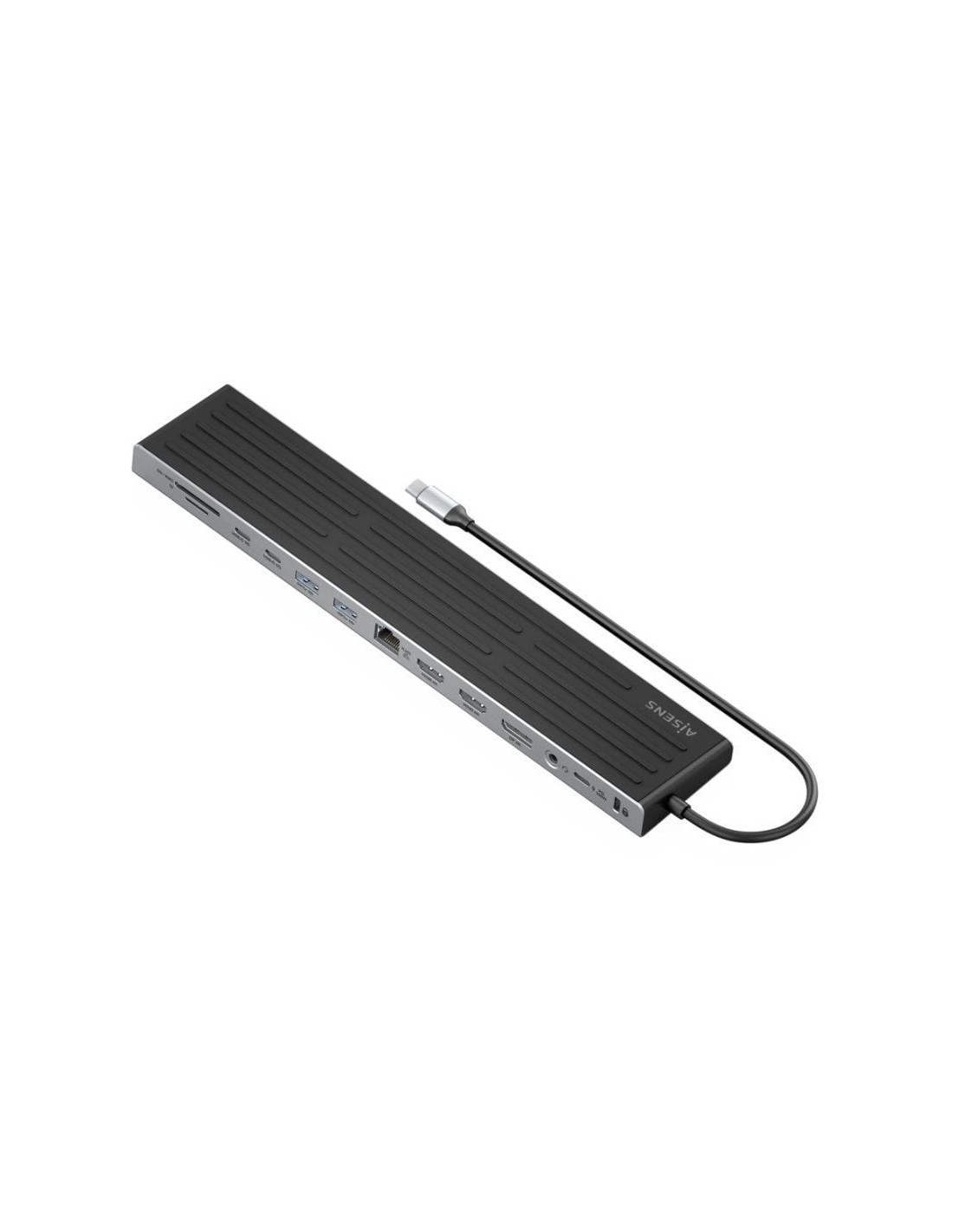 AISENSASUC-13P042-GR – USB-C Dock 13 en 1, USB-C a 2xHDMI, 1xDisplayport, 1xRJ45, 3xUSB-A, 2xUSB-C, 1xUSB-C PD, 1xSD, 1xMicro SD, 1xAudio, 1xRanura Kensington, 30cm