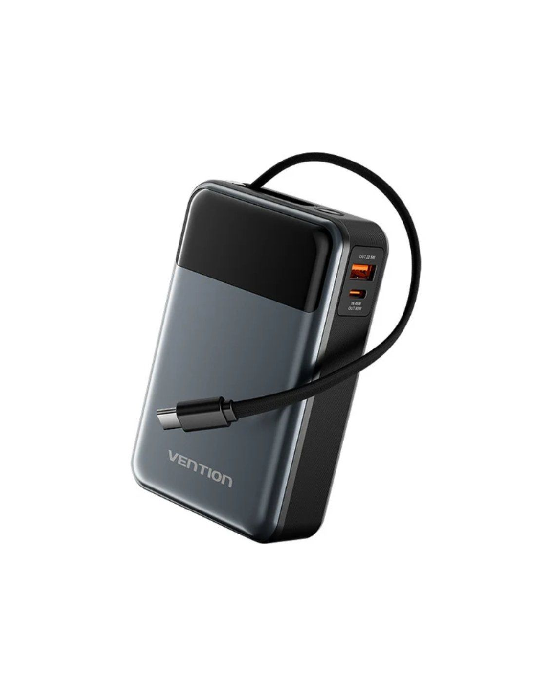 20000mAh Power Bank (USB-C + USB-C/USB-A) with Built-in USB-C Cable 65W Black LED Display Type