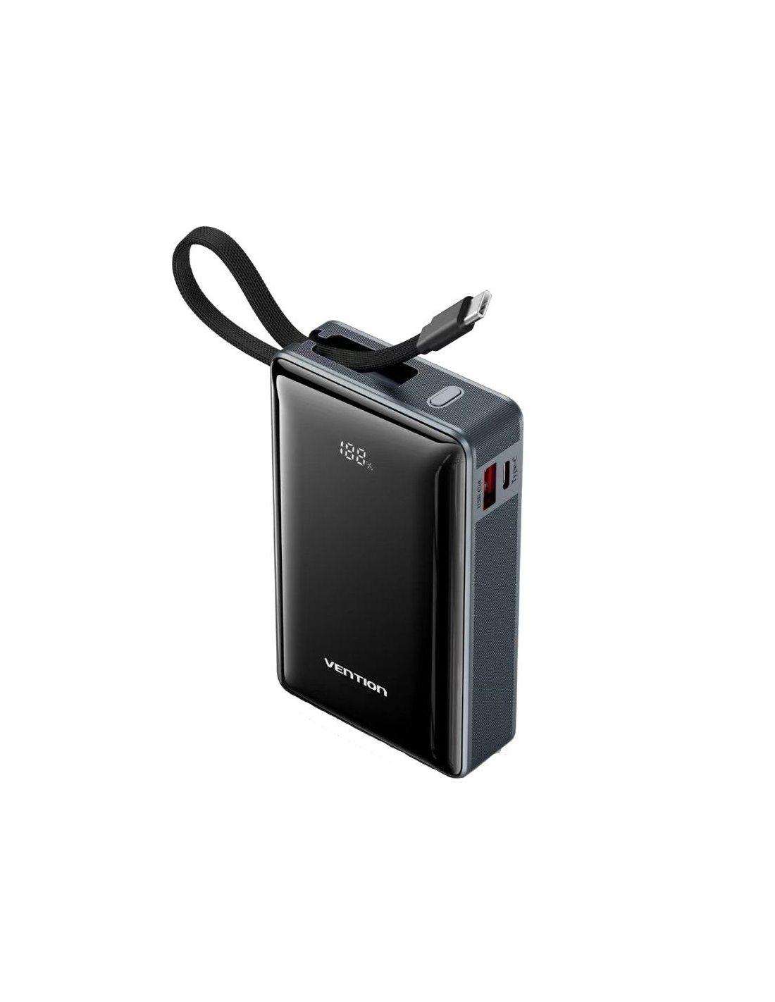 20000mAh Power Bank (USB-C + USB-C/USB-A) with Built-in USB-C Cable 65W Gray LED Display Type