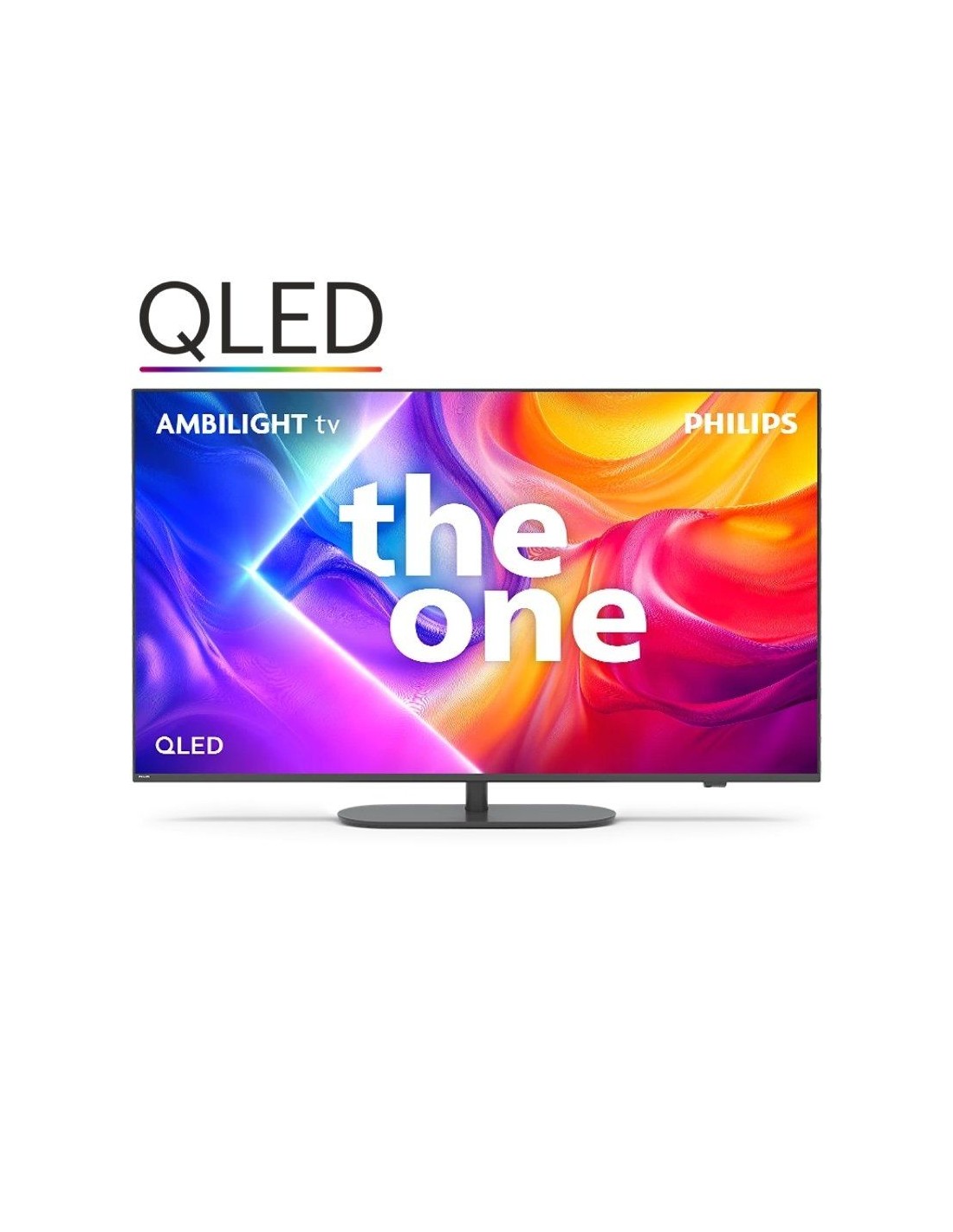 Smart TV de 43' con pantalla QLED 4K (3840 × 2160) y sistema Ambilight de tres lados para una experiencia visual envolvente. Cuenta con motor de imagen P5 Perfect Picture Engine, plataforma Titan OS, compatibilidad con Matter para Smart Home, y características de juego fluidas como VRR 144 Hz y HDMI 2.1.
